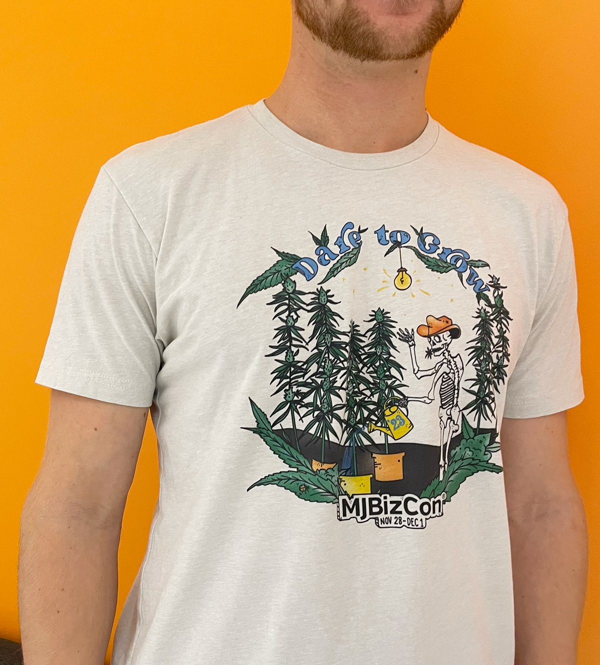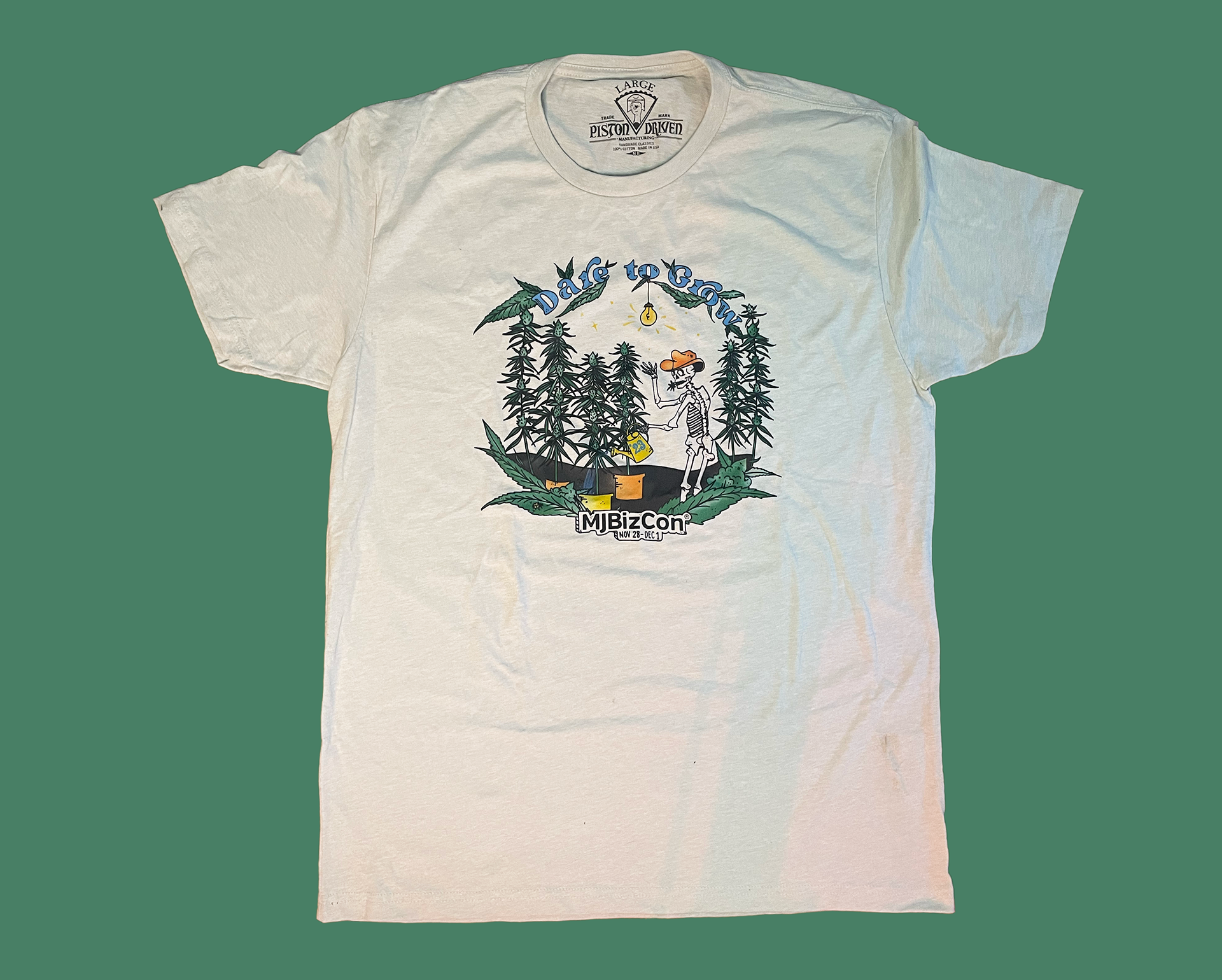 For this show, I had the opportunity to be chosen as a finalist after hundreds of submissions, for MJBizCon's annual t-shirt contest, which was sold at the merch booth during the three day event. My playful design featured a whimsical skeleton in a farmer's hat tending cannabis plants in a vibrant greenhouse, blending humor with the show's "Dare to Grow" slogan. I’m thrilled my design resonated with attendees, and it was incredibly rewarding to see the design purchased and worn around the convention, it even sold out by the end of the show!
