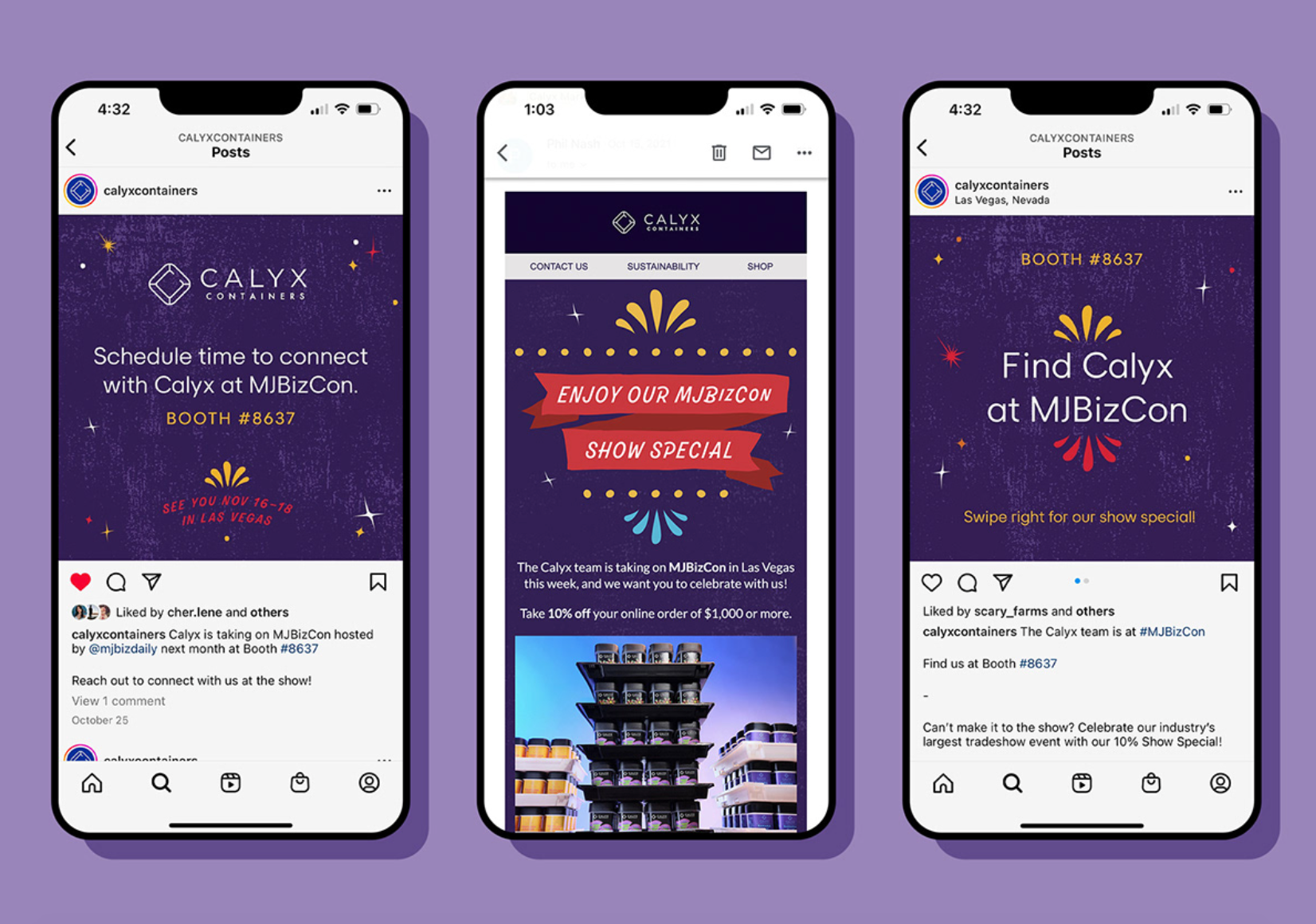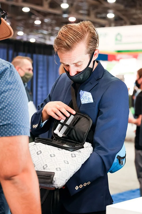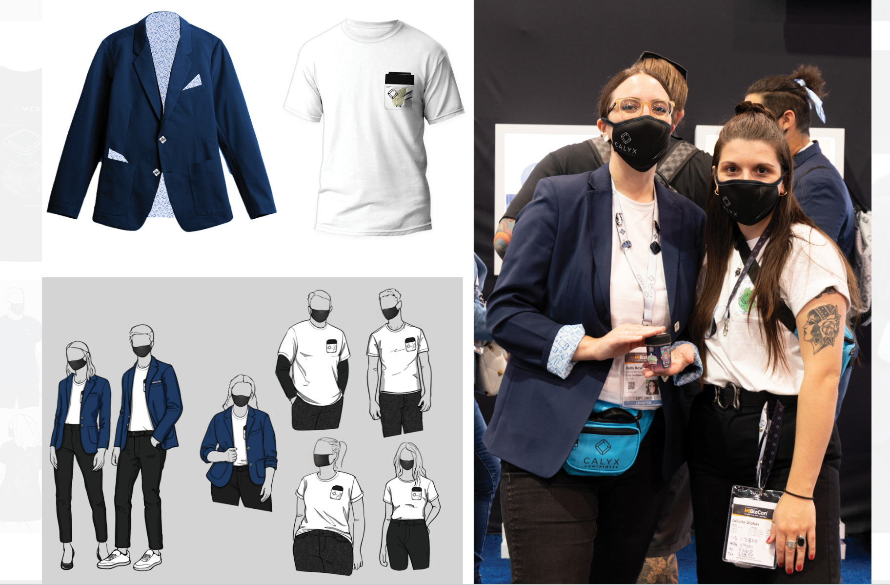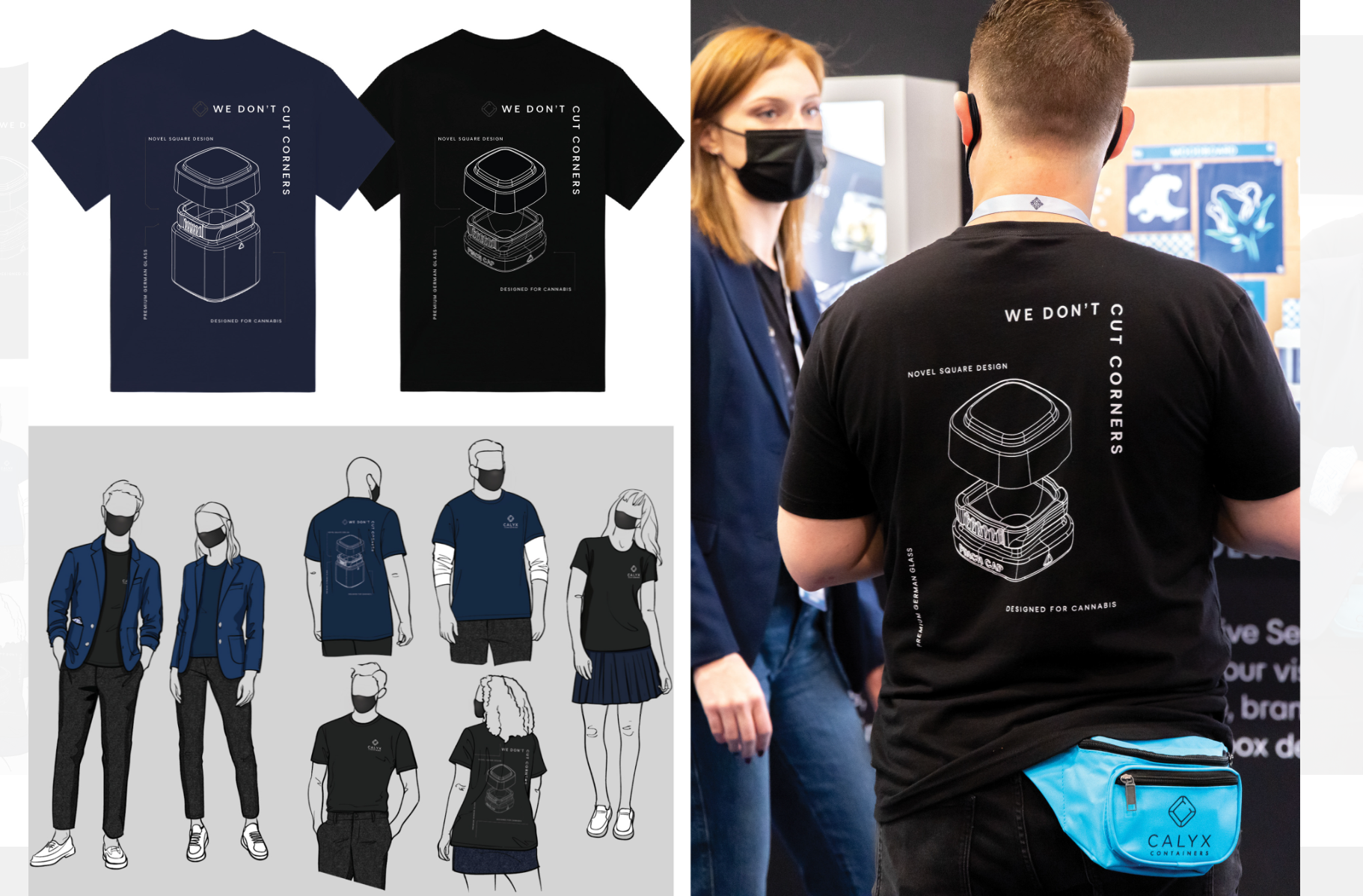 The Creative team at Calyx developed custom uniforms and promotional materials for MJBizCon, including t-shirts, polos, blazers, masks, backpacks, fanny packs, pocket squares, and promotional labels for display cases and giveaways. We ensured a sleek, tech-inspired, cohesive design language across all items, enhancing our presence at the event and future trade shows.