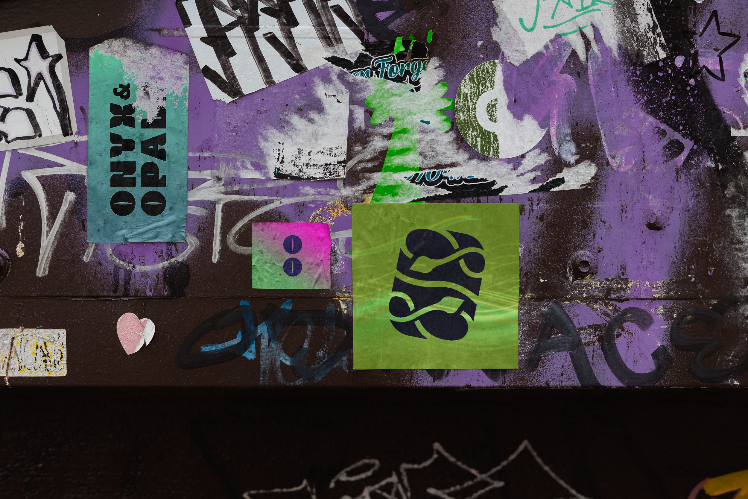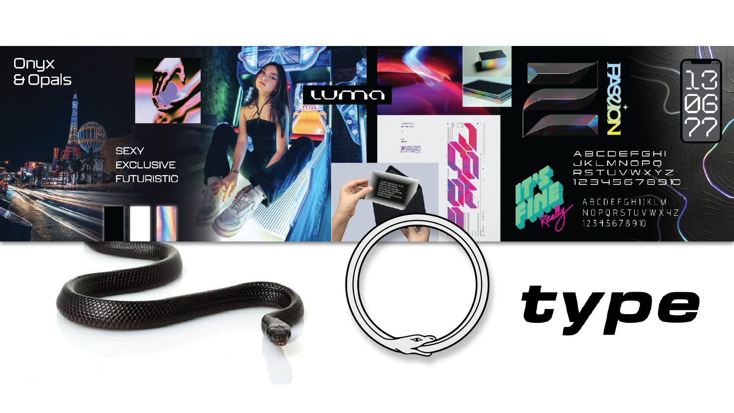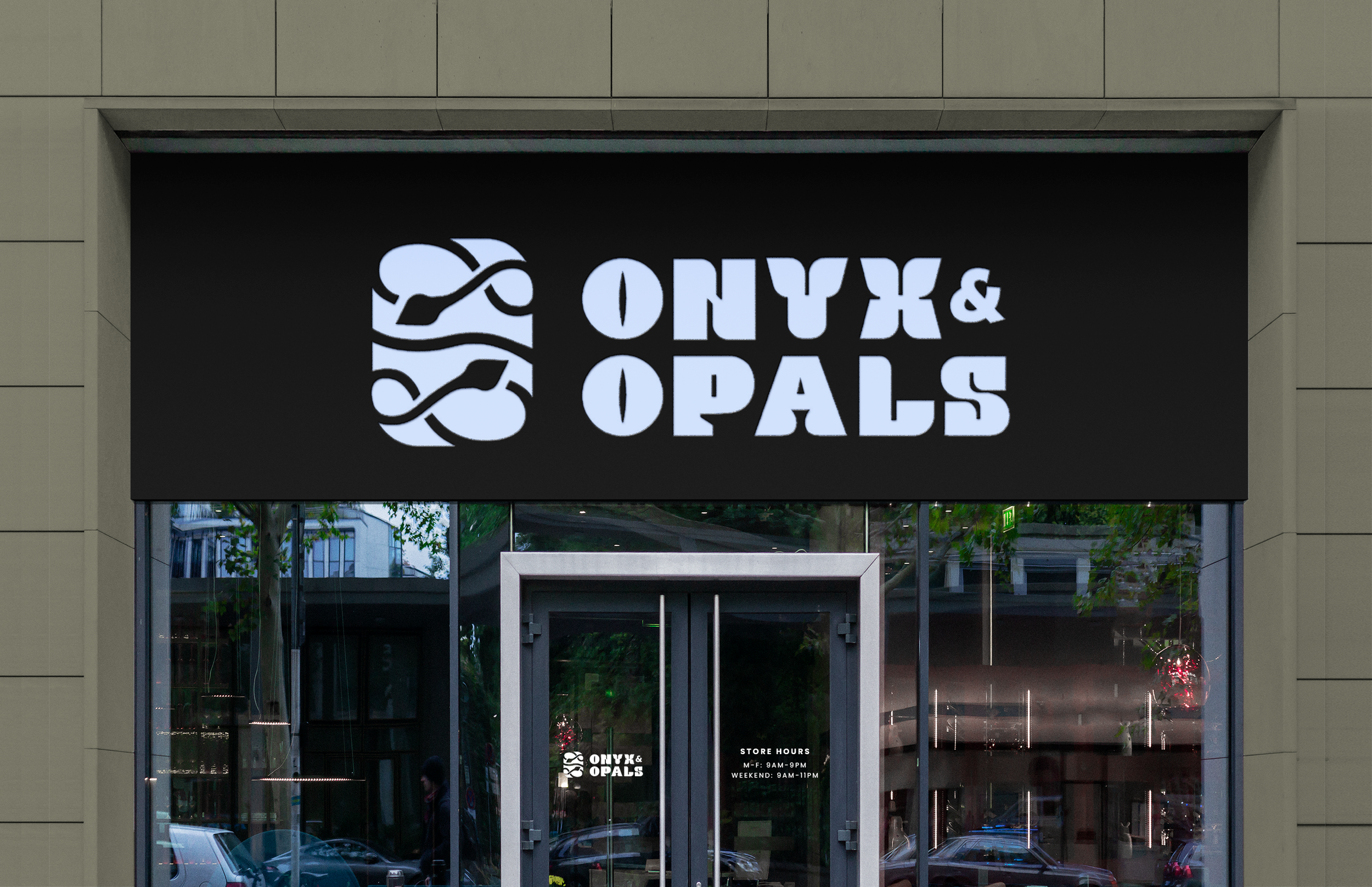 The logo features custom-drawn typography, uniquely crafted for Onyx + Opals, incorporating the client's desire to feature snakes as a their key design asset. I paired this exclusive type with a fresh take on the iconic twin ouroboros, representing infinity as the snakes wrap around the central stone.