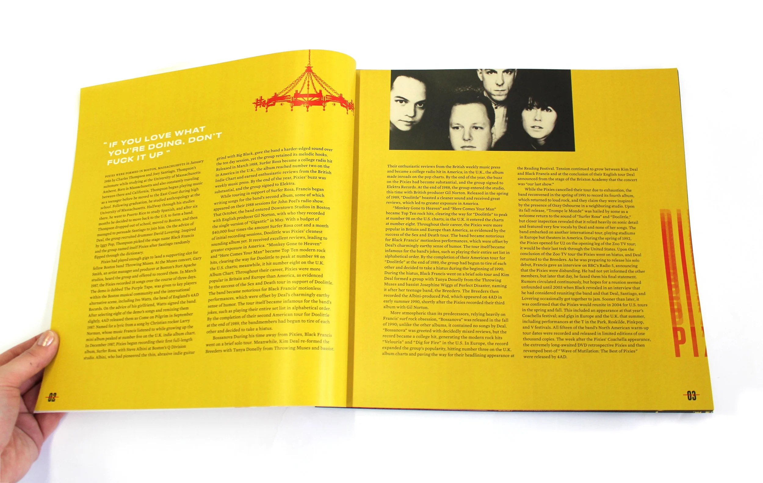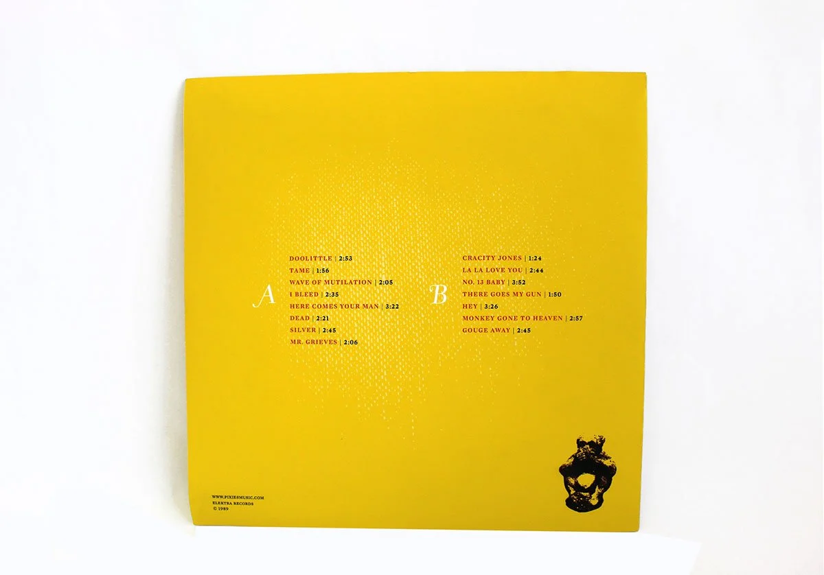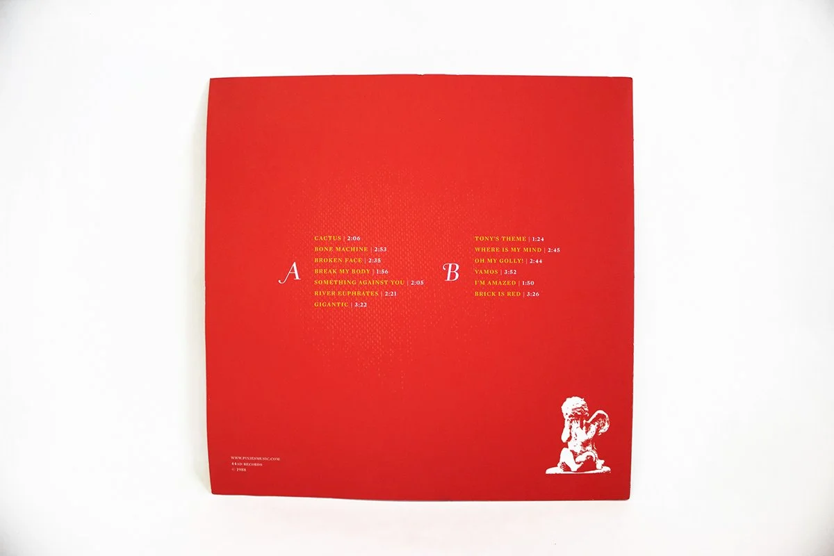 The album box’s packaging uses a mix of materials; translucent paper, chains, and a screw-bound lyric book, adding texture and depth to the overall design. The albums are housed in a canvas box constructed from board, canvas, and a foam interior, ensuring each component is presented in an immersive, tactile way. Inside the box, you'll find all three albums, a lyric book, fold-out poster, a set of three pins, and a collection of postcards—offering an immersive and sensory experience that captures the raw, jagged energy of the Pixies.
