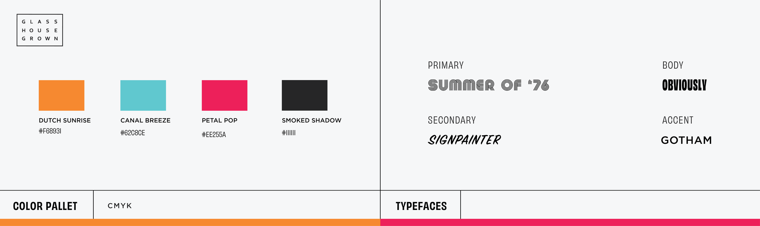 Glass House Grown, a family-owned cannabis brand in Oregon, approached Calyx for a complete packaging makeover, aiming to create vibrant and engaging packaging that reflect their Dutch heritage, but with a retro twist. The goal was to integrate these elements seamlessly into their visual identity while differentiating themselves in the competitive, diverse, Oregon cannabis market.